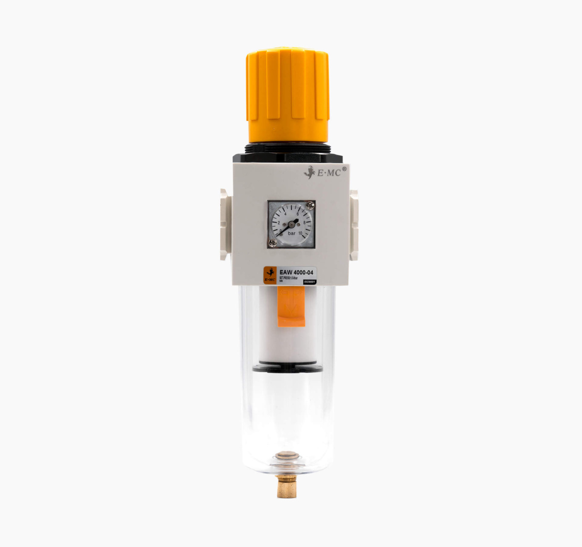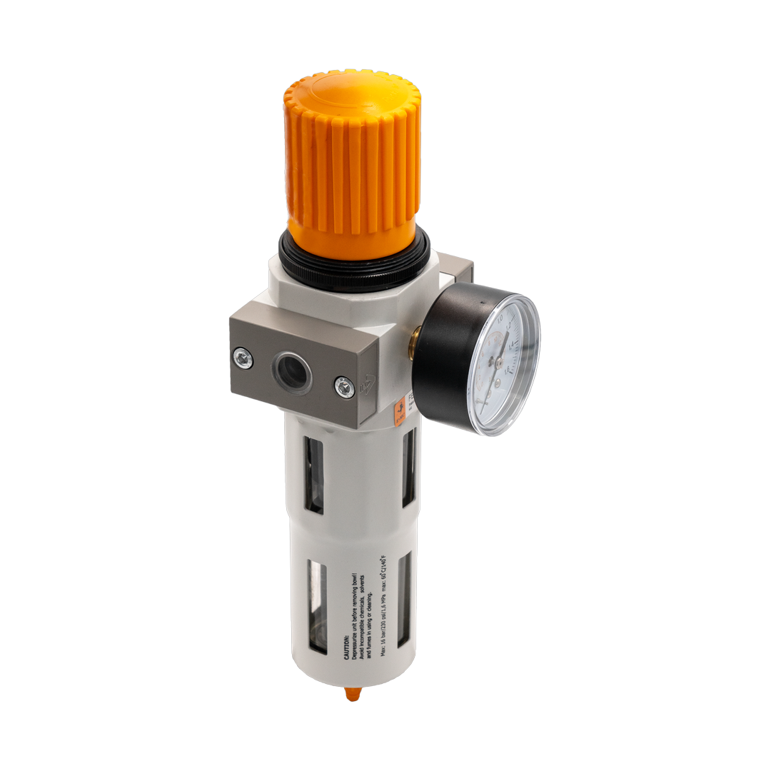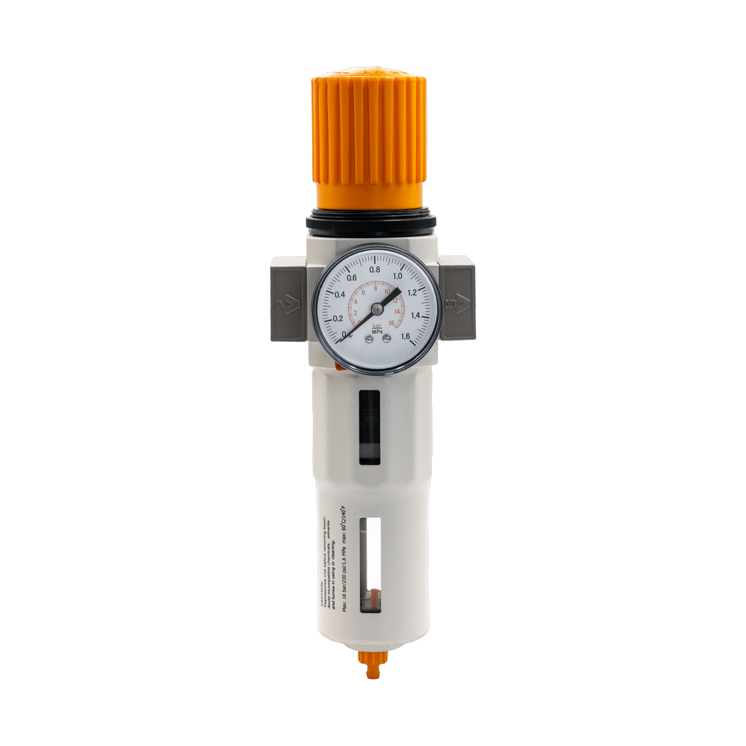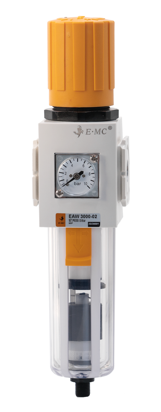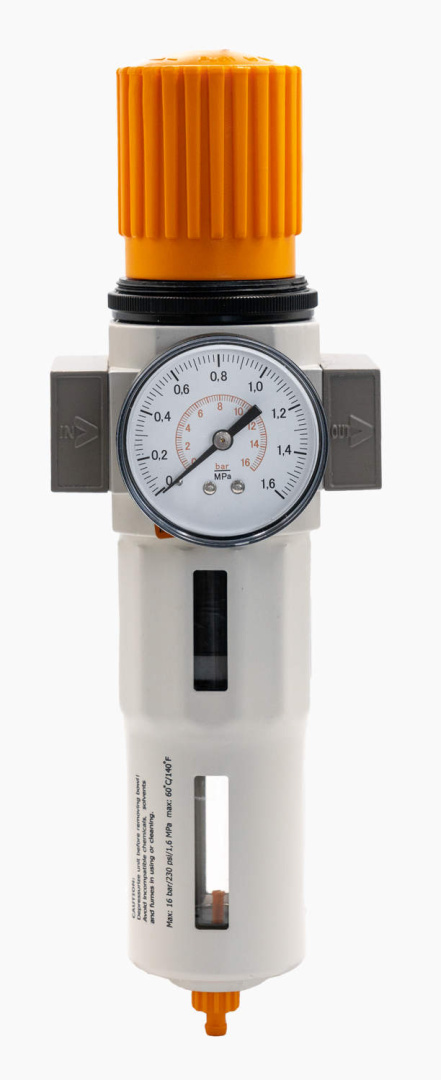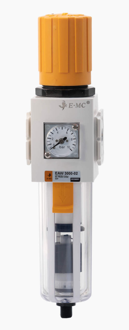 Фильтры-регуляторы давления – устройства подготовки сжатого воздуха, объединяющие в себе водосепаратор, грубый фильтр и регулятор давления. Как опция в него может входить манометр, тот или иной вид отвода конденсата, обратный клапан, защитный чехол для колбы, устройства фиксации настройки. Фильтры-регуляторы имеют такой же диапазон настройки рабочего давления, что и регуляторы, но в отличие от первых всегда монтируются вертикально.